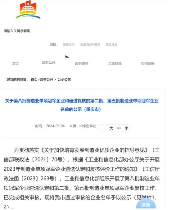重泵公司入選國家制造業(yè)單項(xiàng)冠軍企業(yè)名單