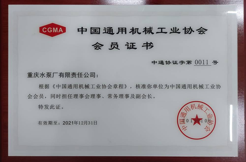 中國通用機(jī)械工業(yè)協(xié)會會員證書