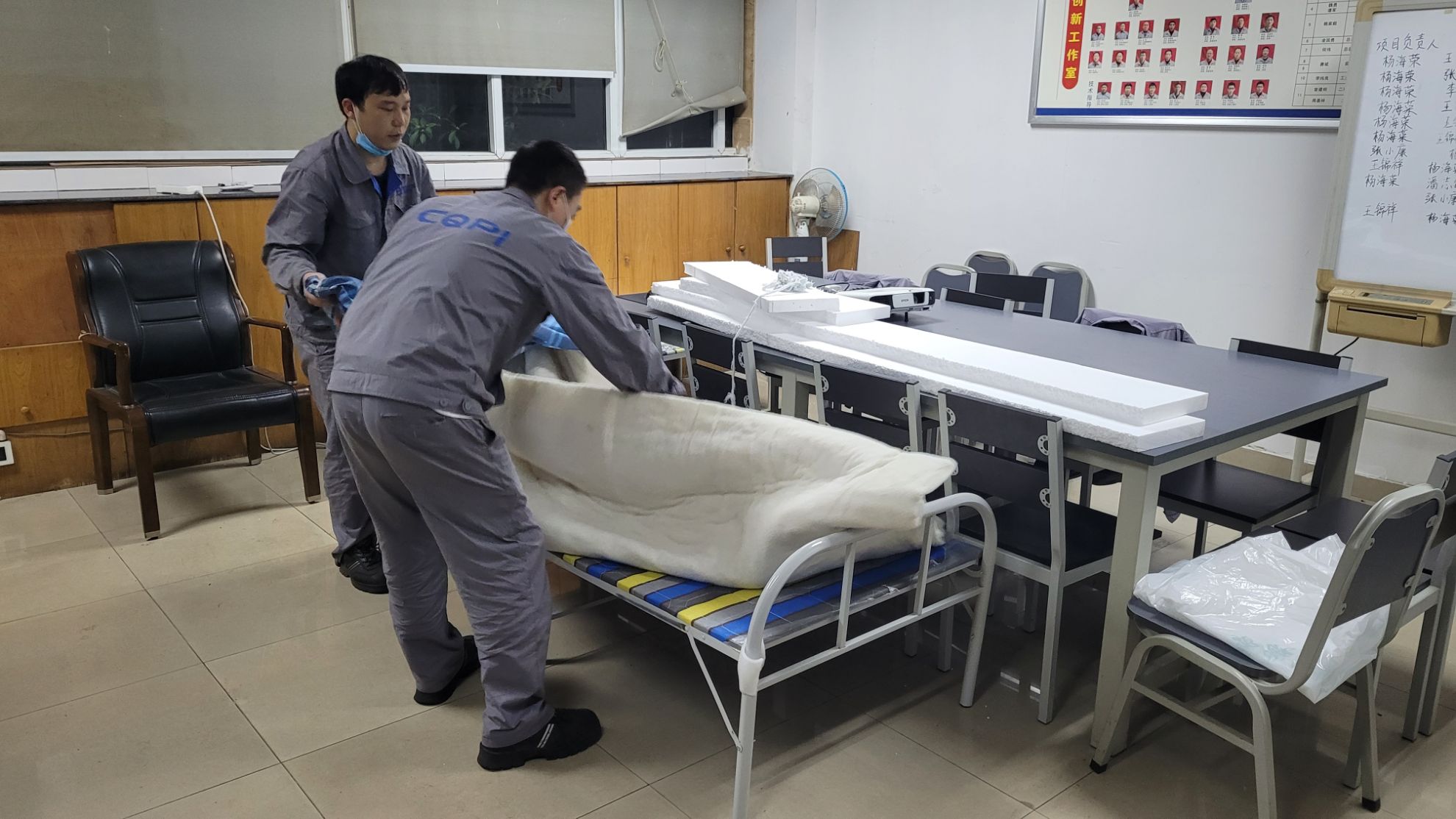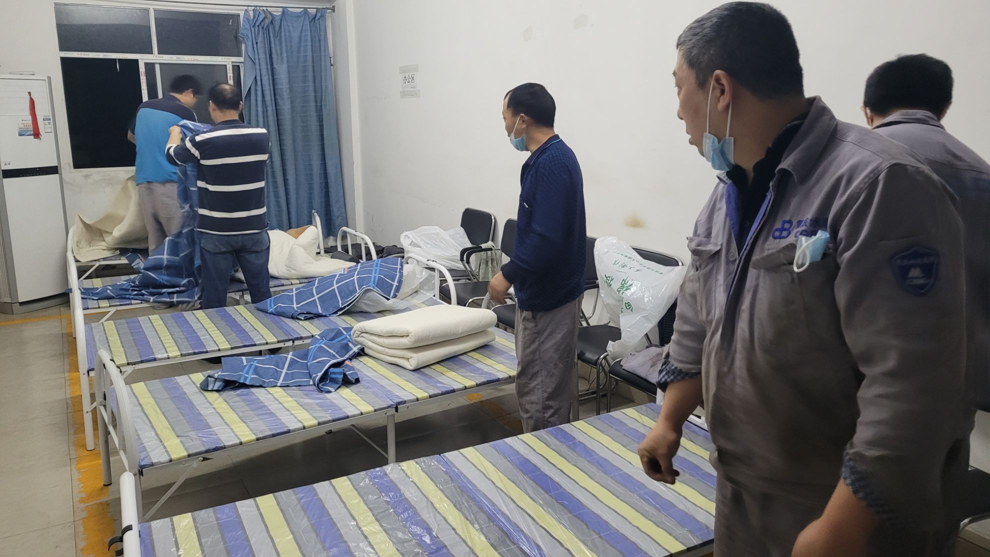 各職能部門認(rèn)真落實(shí)公司疫情防控領(lǐng)導(dǎo)小組要求,嚴(yán)格閉環(huán)管理措施,落實(shí)每日檢測核酸、場所每日消殺。公司順利完成了后勤保障和物資采購工作,于11日晚及時(shí)向駐廠人員統(tǒng)一分發(fā)折疊床、被褥、毛巾、牙膏牙刷等生活物資。機(jī)加中心、總裝車間、容器車間、試驗(yàn)站、涂裝車間、儲(chǔ)運(yùn)處、設(shè)備部等一線車間管理干部堅(jiān)守在第一線,有序組織物資領(lǐng)取、床鋪安置、應(yīng)急藥品儲(chǔ)備等工作。