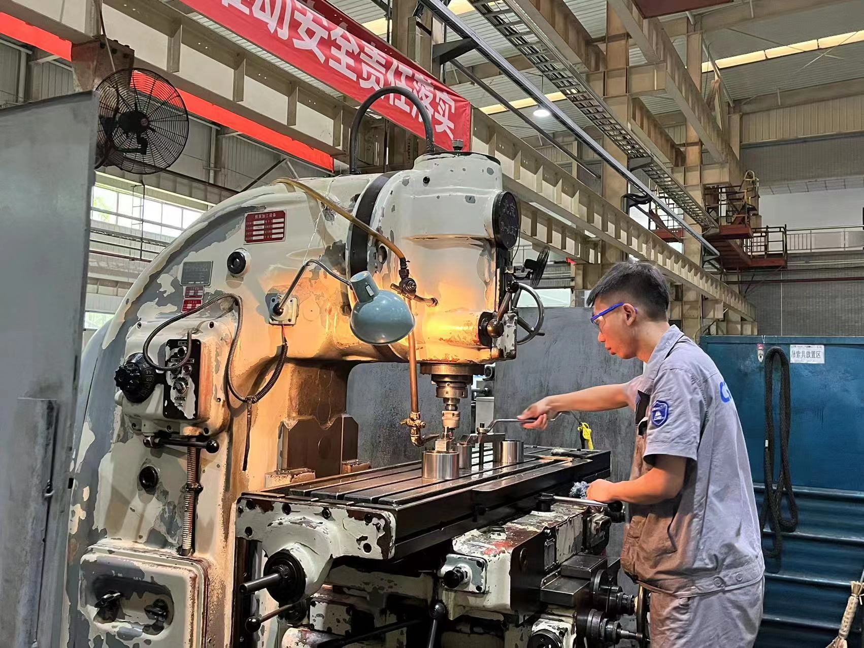 白天,車間內(nèi)一派繁忙景象,工人們緊張繁忙的身影,高昂的工作熱情,感染著每一個(gè)重泵人,激勵(lì)著重泵人奮楫揚(yáng)帆。他們中有總裝車間儲(chǔ)運(yùn)吊裝組的骨干們正在緊盯產(chǎn)品裝箱進(jìn)展,有機(jī)加中心姜超恒正在立式升降臺(tái)銑床進(jìn)行洗夾工序,有容器車間的焊工技師們正齊心協(xié)力完成焊接工序……