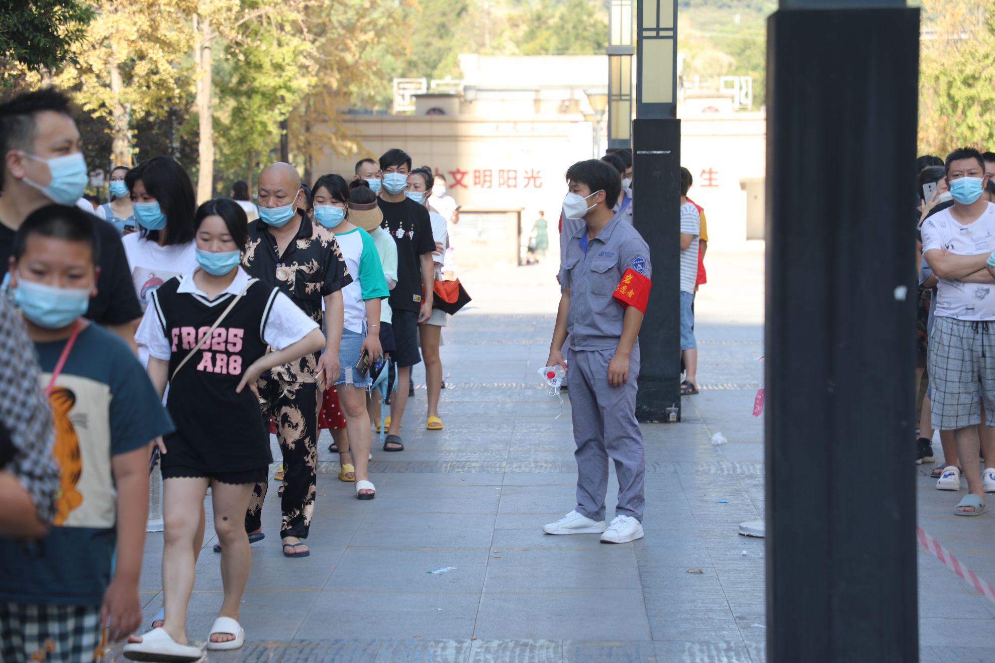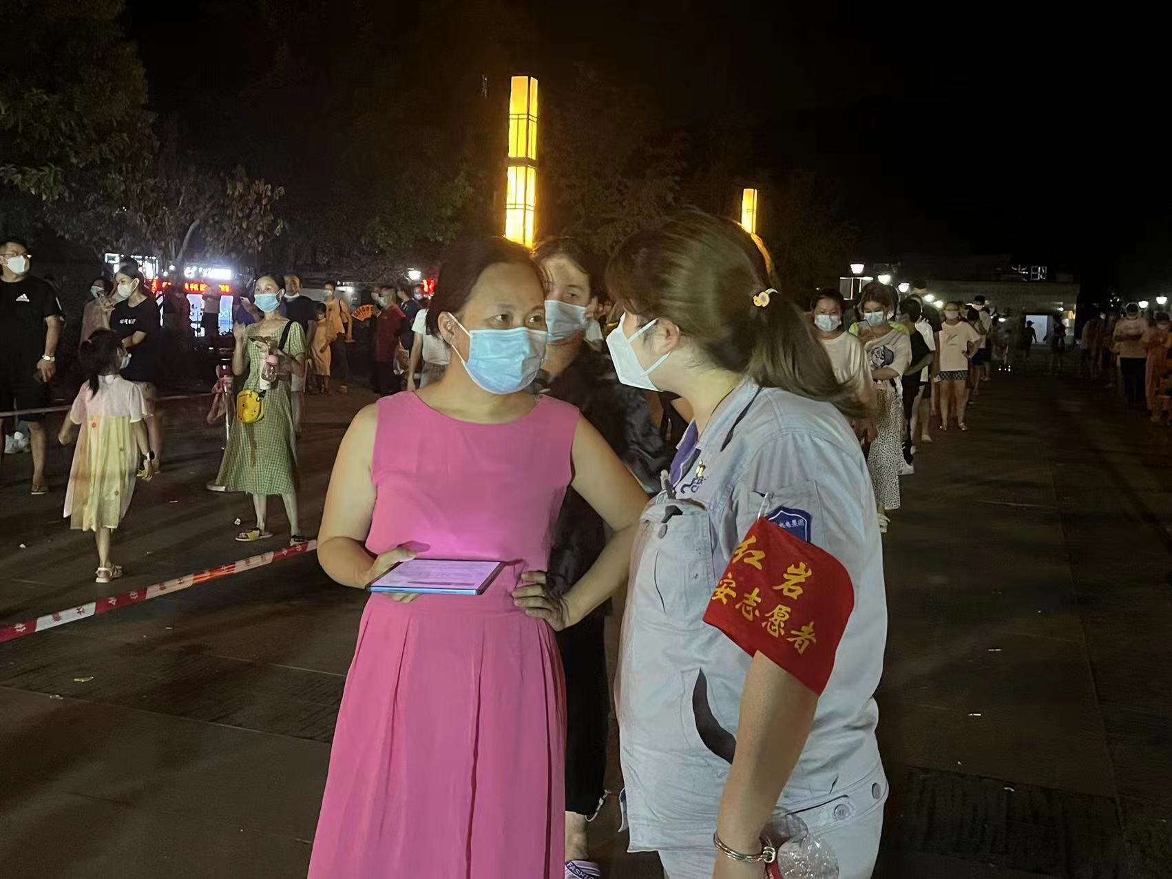 “請大家有序排隊,戴好口罩,保持間隔距離”。8月24日早上5點30分,集合完成的志愿者們在與社區(qū)工作人員迅速對接后,就前往各個檢測點各司其職,“志愿紅”成為人群中一道靚麗的風景線。隨著太陽漸漸升起,地表溫度不斷升高,志愿者們不懼高溫,時刻提醒著居民們有序排隊、幫助老人打開核酸檢測碼、為居民解答各種疑惑、提醒注意事項,確保核酸檢測工作推進迅速、進展有序。