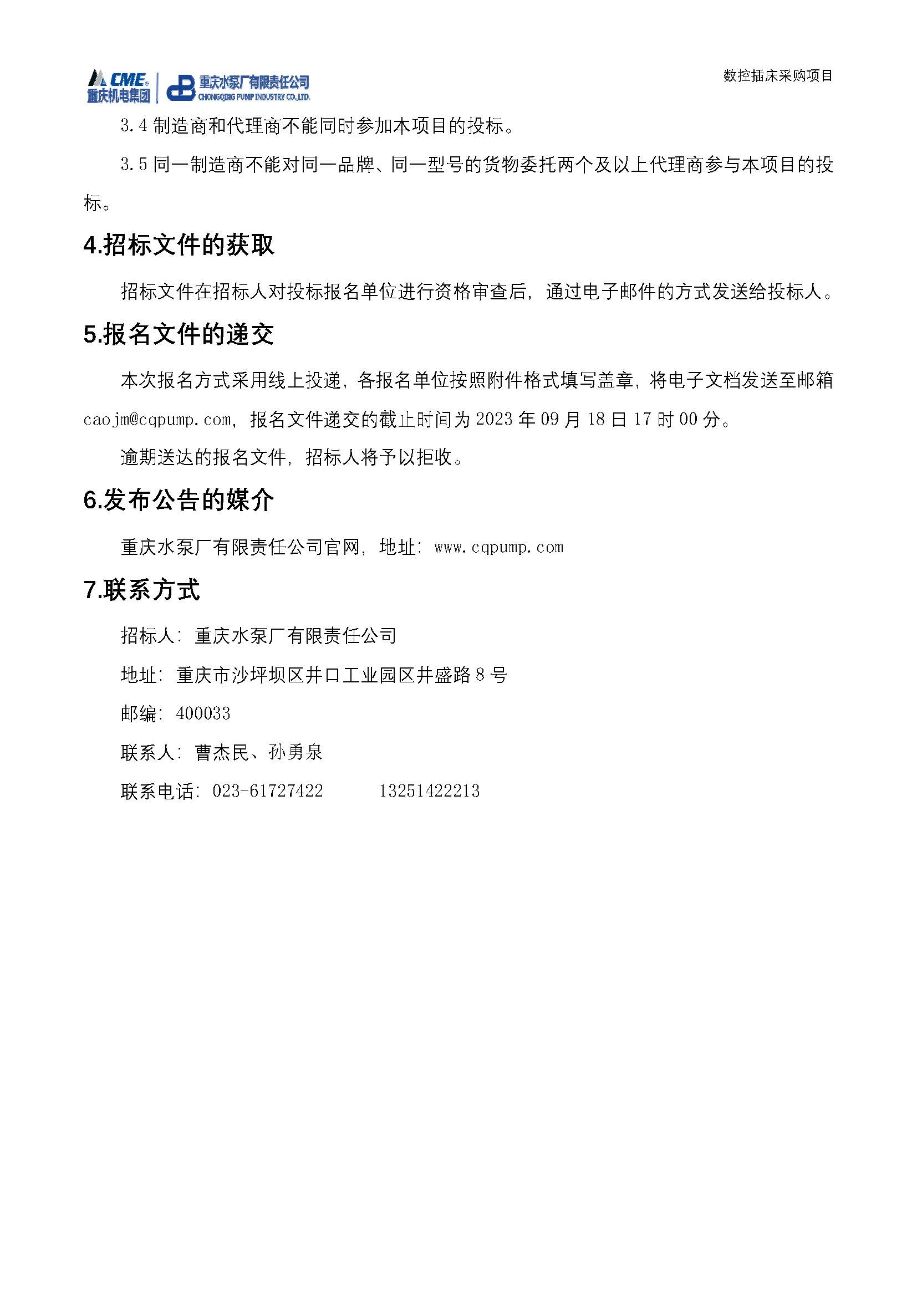 數(shù)控插床采購(gòu)招標(biāo)公告