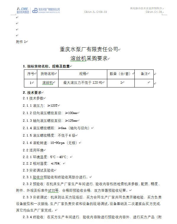 大型往復(fù)隔膜泵研發(fā)測試能力建設(shè)項(xiàng)目 滾絲機(jī)招標(biāo)公告